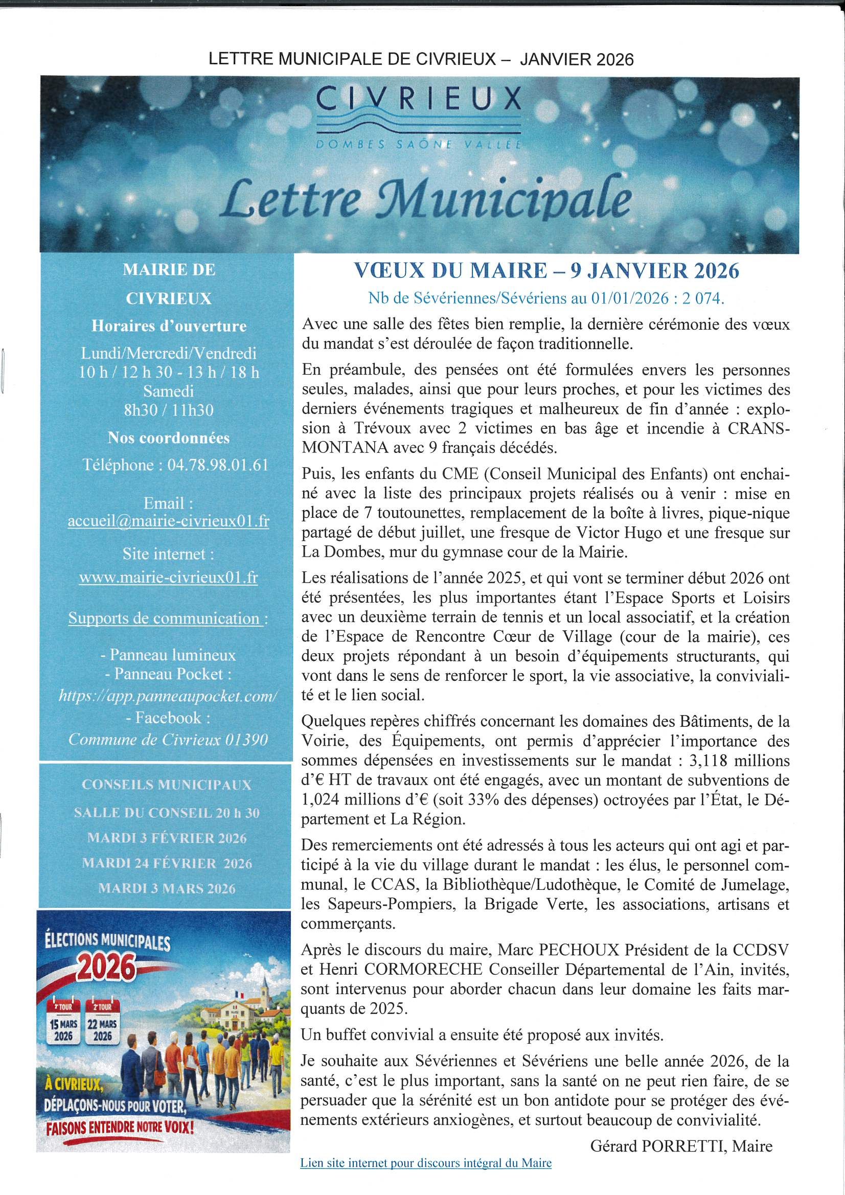 Veuillez trouver ci-dessous le discours des vœux du maire du 9 janvier 2026