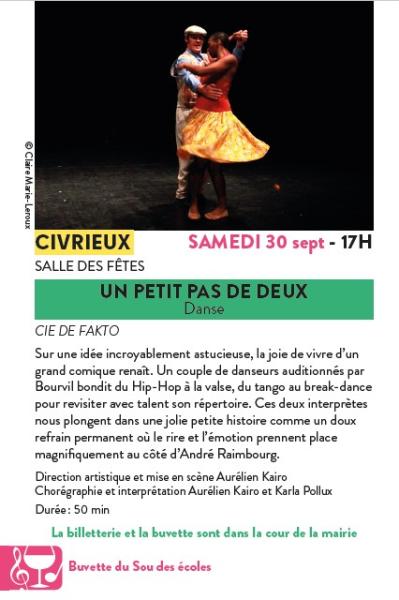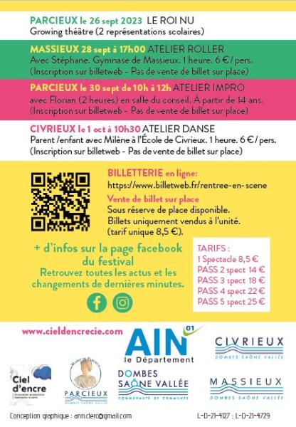 Et une ! Et deux ! Et trois éditions du festival RENTREE EN SCENE. Une nouvelle dimension donnée au festival avec en plus des spectacles à CIVRIEUX, d'autres spectacles à MASSIEUX et PARCIEUX.